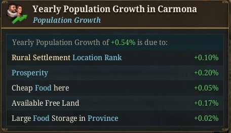 食糧が余っていて、一般的な繁栄があれば、人口は成長し、ポップを高い階級へ昇格させられることもあります。ただし、適切な職 (job) が存在する場合に限ります。逆に、戦争や不作による食糧不足は飢餓をもたらし、生産力と軍事力をともに縮小させる可能性があります。