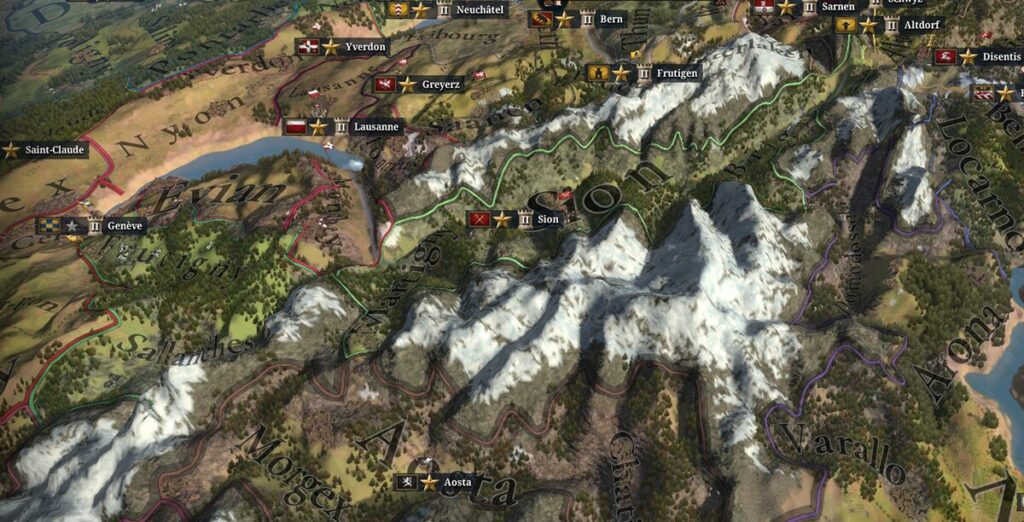 地図の視覚的豪華さ (visual splendor) は没入感を高め、冬のアルプスの雪、モンスーン時のインド平野の青々とした風景など、季節変化も表現されます。これらの変化は単なる見た目ではなく、軍隊の移動を妨げたり、生産を中断させたりといった実際のゲーム効果を伴います。