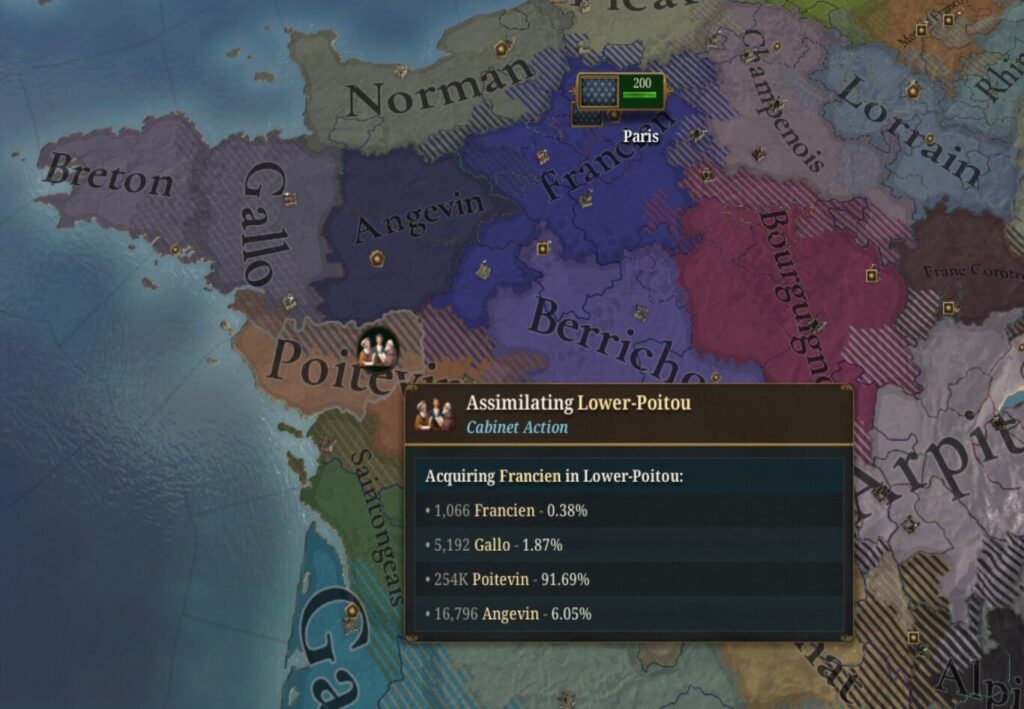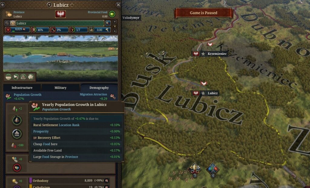 文化的・宗教的多様性はもう一つの深みを加えます。国教 (state religion) を促進すればポップを統合できる可能性がありますが、少数派 (minorities) を疎外 (alienate) することになり、反乱 (unrest) や蜂起 (revolts) のリスクが高まります。民族同化 (assimilation) は可能ですが、それは遅くコストのかかるプロセスです。外交的手腕 (diplomatic finesse) や軍事力 (military strength) といった貴重な資源を費やして成功させねばなりません。