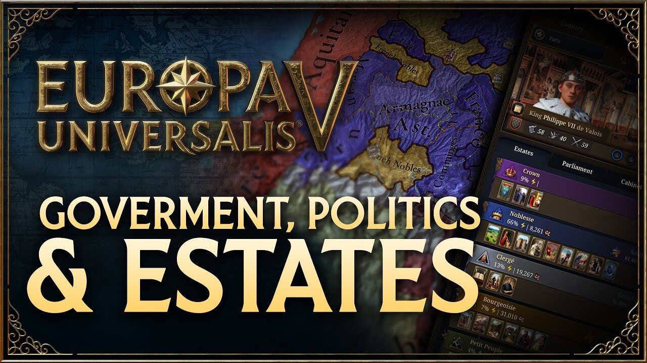 今日は、あなたの国家の核心 ― 政府 (Government)、政治 (Politics)、そしてエステート (Estates) ― を見ていきます。これらは、あなたがどう統治するか、民衆がどう反応するか、あなたの帝国が歴史の荒波をどう乗り越えるかを形作るシステムです。