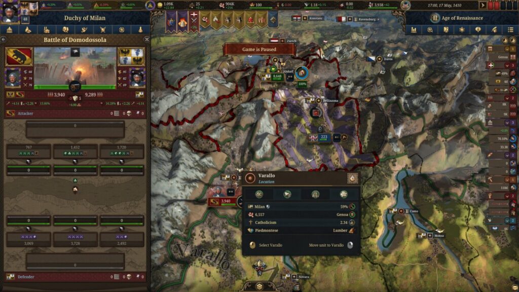 これまでの開発日記をお読みいただいた方は、私たちの理念をすでにご理解いただけていると思います。それは、「あらゆる選択に結果が伴う、生きたシミュレーションを作る」ということです。Europa Universalis V における戦争も同じ哲学に基づいています。軍隊は人々によって構成され、兵站は重要であり、そして世界はあなたの征服の夢に対して反撃してくるのです。