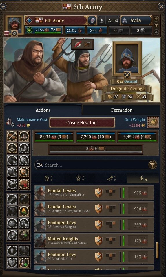 徴兵の質は、その元となる人口の種類によって異なります。農民からの徴兵はおそらくあなたの軍の主力となりますが、最終的には槍を持った規律の低い前線兵となるでしょう。一方で、貴族からの徴兵は重装甲の騎士を提供します。このように、異なる人口層はそれぞれ異なる装備、規律、そして戦場での役割を持つ徴兵を生み出します。